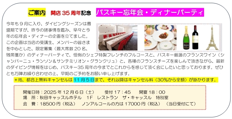 店内に温水プールを完備し、全く初めてのOWDコースからプロコースまで、各種ダイビングコースを開催中です。