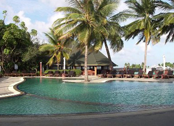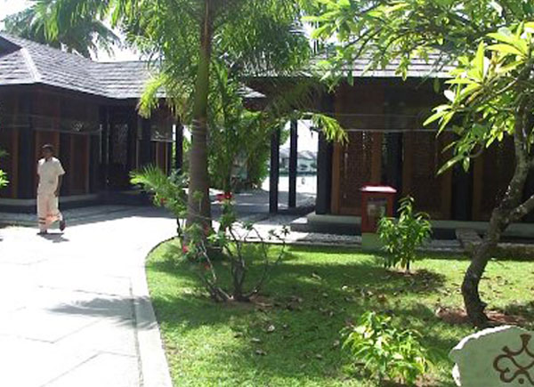 ダイビングスクールへはレセプションからカートで裏手の岸壁へ移動して、そこからドーニで渡ると言う。