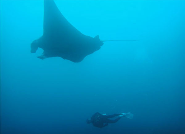 なんとエントリー直後からマンタ三昧で、何とも贅沢なダイビングだった。