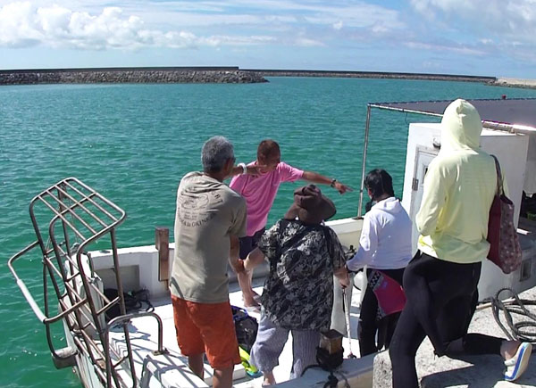 2017年6月8日、パスキーダイブステーションの夏のツアーは、 昨年に続いて沖縄の小浜島だった。しかも今年は台風の襲来がまだ少ない6月にシフトしての催行だった。 秋田から羽田に飛び、羽田からは石垣空港への直行便と予約していたジャンボタクシー、 それに小浜島への定期船で9時間ほどの旅となった。 無事に島についてダイブサイトノ口のコテージに落ち着いた後、 夕食はいつもの「さとうきび」に出かけた。