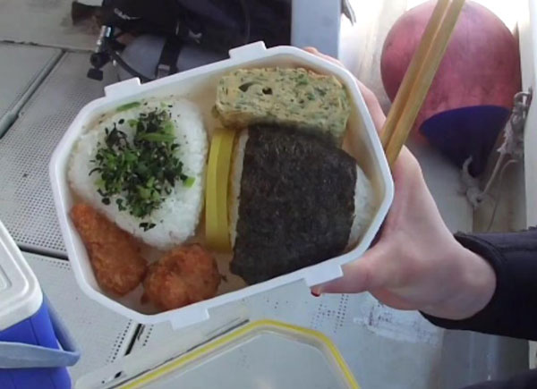 翌朝は沖縄らしいいいお天気に恵まれて、 朝食後は早速港のダイブボートに向かった。 初日の1本目はヨナラ水道を北上して西表島の北東角のウバナリ島のポイントに出かけた。 ここは砂地とサンゴが入り混じっていて、特に珊瑚礁には綺麗な小魚が沢山群れていた。 その後船を島影に移動させてお昼ご飯にした。 野口さん手造りのおにぎり弁当だが、 お米はこだわりの「あきたこまち」とのことでとてもおいしいかった。 2本目はウバナリの対岸の、西表の野原(のばる)に潜った。 ここには大きな洞窟やドロップオフがあるようだが、 今日は比較的楽な棚の上のサンゴや小魚の多いところを案内してくれた。
